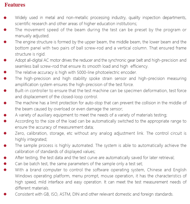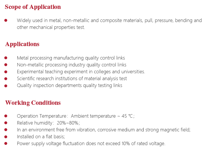 Widely used in metal, non-metallic and composite materials, pull, pressure, bending and other mechanical properties test.
