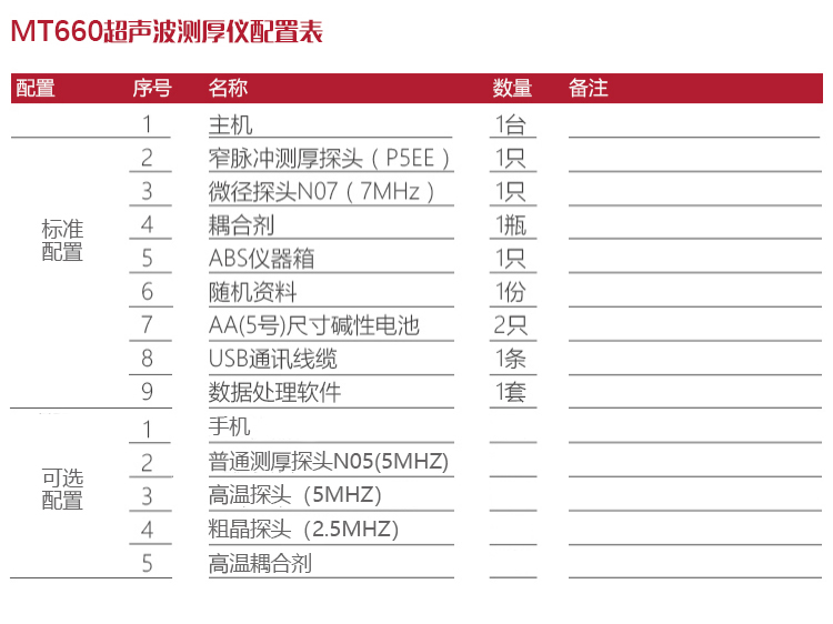 | 探頭直徑 | 測(cè)厚探頭NO5直徑10MM、微晶探頭N07直徑6MM、高溫探頭HT5直徑12MM、窄脈沖測(cè)厚探頭P5EE直徑10MM、粗晶探頭直徑12MM |
